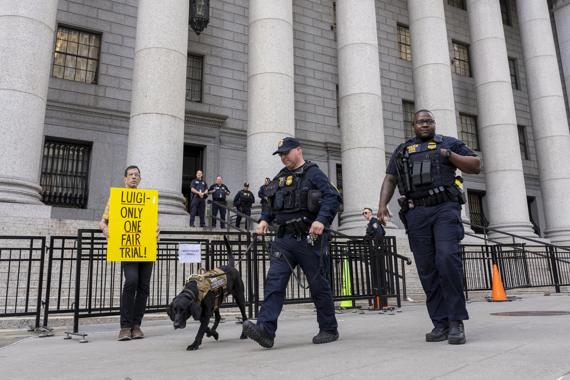 Una persona sostiene un letrero a las afueras de la corte federal de New York durante la audiencia de Luigi Mangione este miércoles, en Nueva York (Estados Unidos). EFE/ Angel Colmenares