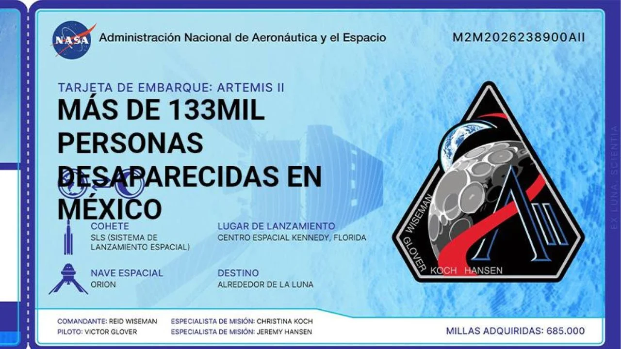 Más de 50 ‘Tarjetas de Embarque’ con nombres de desaparecidos en México vuelan a la Luna en la misión Artemis II. El colectivo de búsqueda ‘Fuerzas Unidas por Nuestros Desaparecidos (as) en Nuevo León’ (FUNDENL) informó a través de Facebook el miércoles 1 de abril. La misión contempló llevar una memoria USB con ‘Tarjetas de Embarque’ y cada una contiene el nombre de las 5.6 millones de personas de todo el mundo que mandaron el suyo para volar simbólicamente a la Luna.
