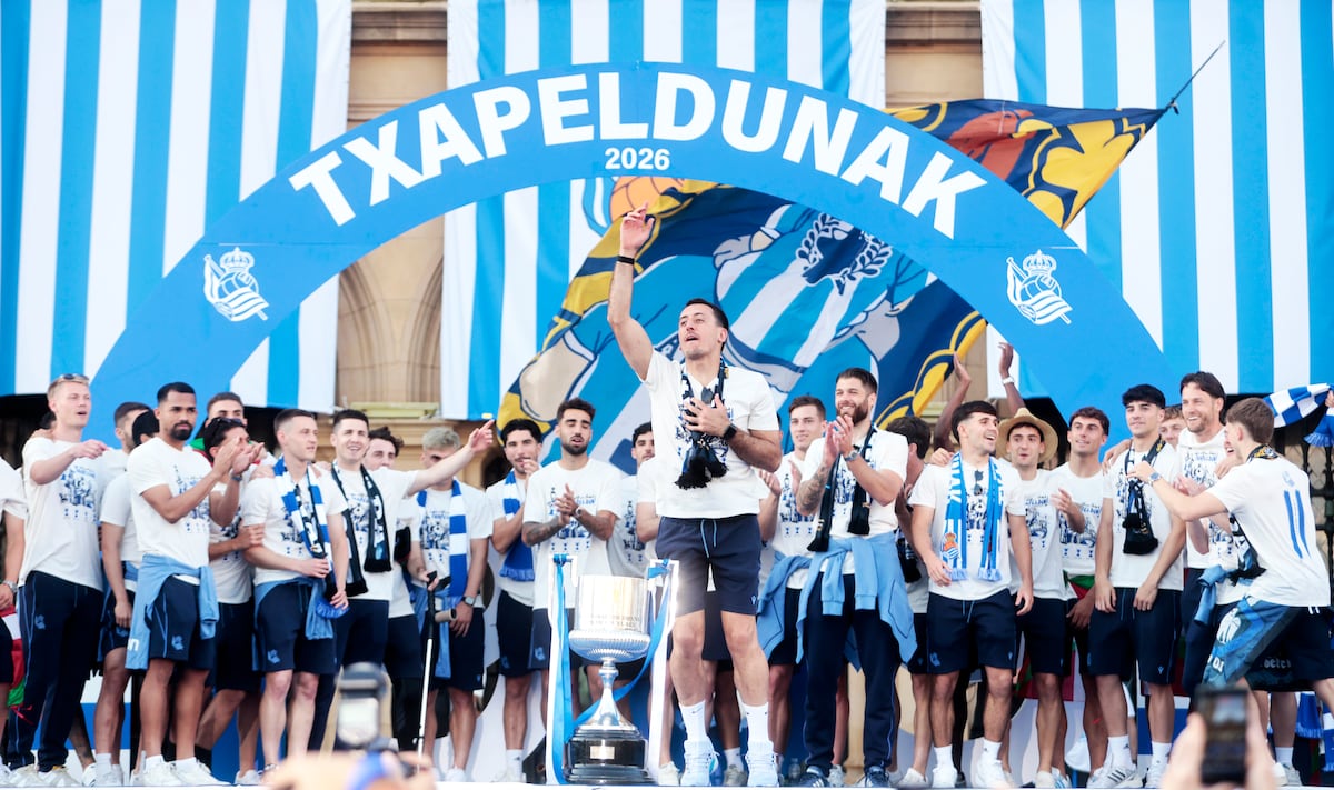 El lunes, la comitiva del equipo llegó en un autobús descapotable al Alderdi Eder donostiarra hacia las siete menos cuarto, donde esperaban miles de aficionados. En el Palacio Consistorial, los jugadores con la Copa fueron recibidos por el alcalde Jon Insausti, la diputada general de Gipuzkoa Eider Mendoza y el lehendakari Imanol Pradales.