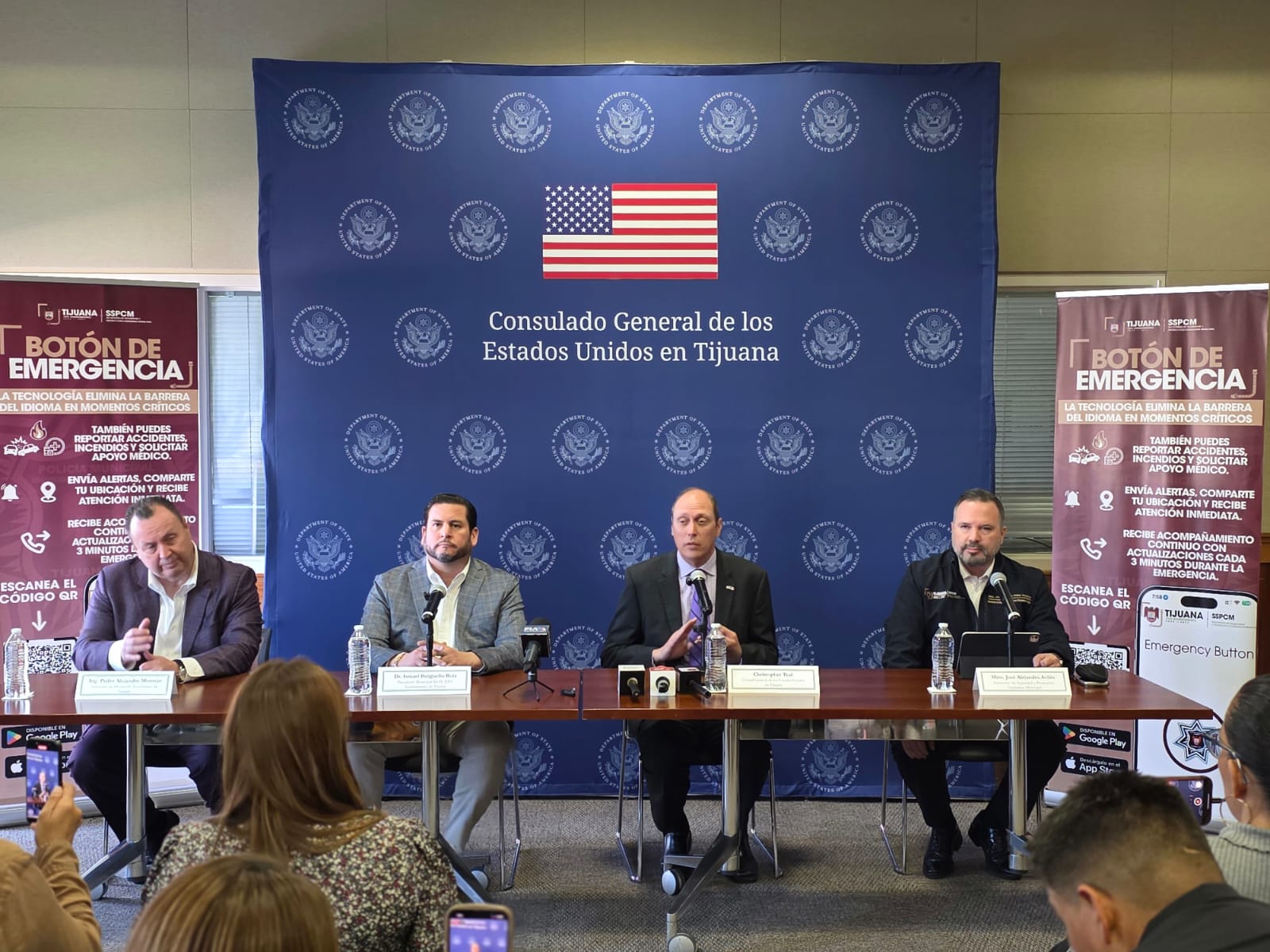 Tijuana, 30 de marzo de 2026.- El gobierno municipal de Tijuana y el Consulado General de Estados Unidos en la ciudad relanzaron el viernes 27 de marzo una nueva versión del Botón de Emergencia digital, ahora con interfaz bilingüe español-inglés para atender a turistas estadounidenses.